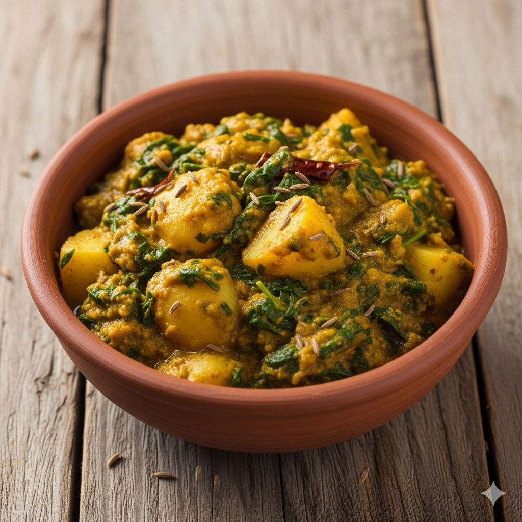 Espinacas y patatas cocinadas con nata, Ajo, Jengibre y Especias