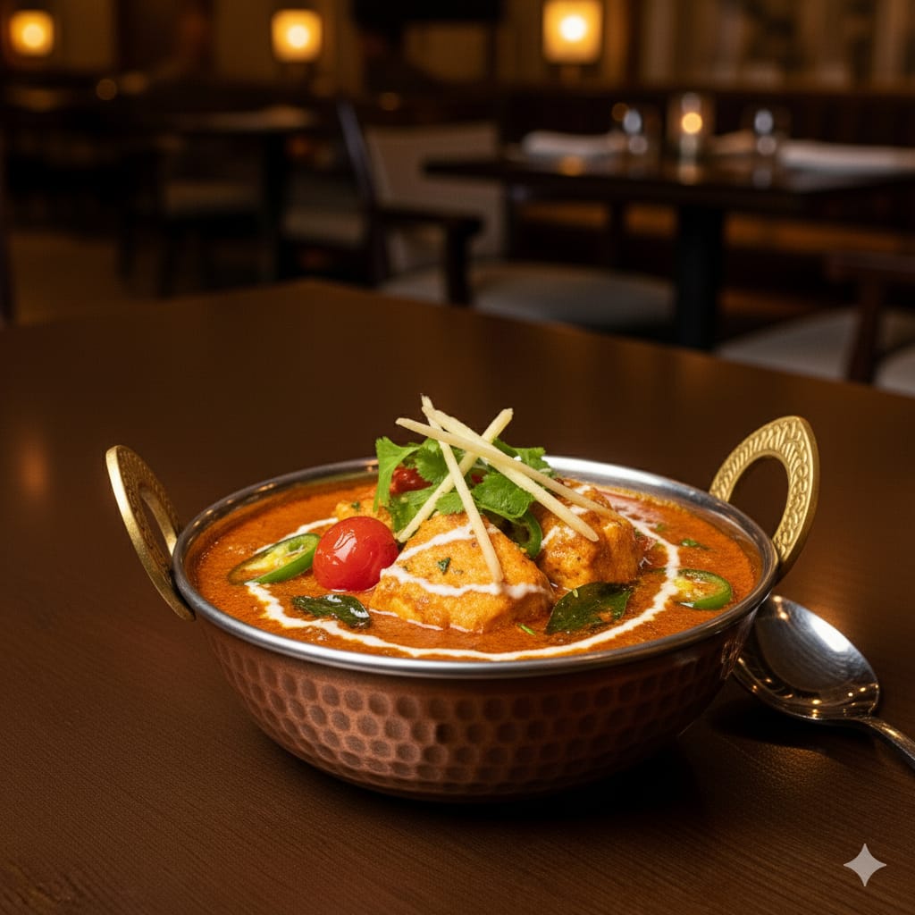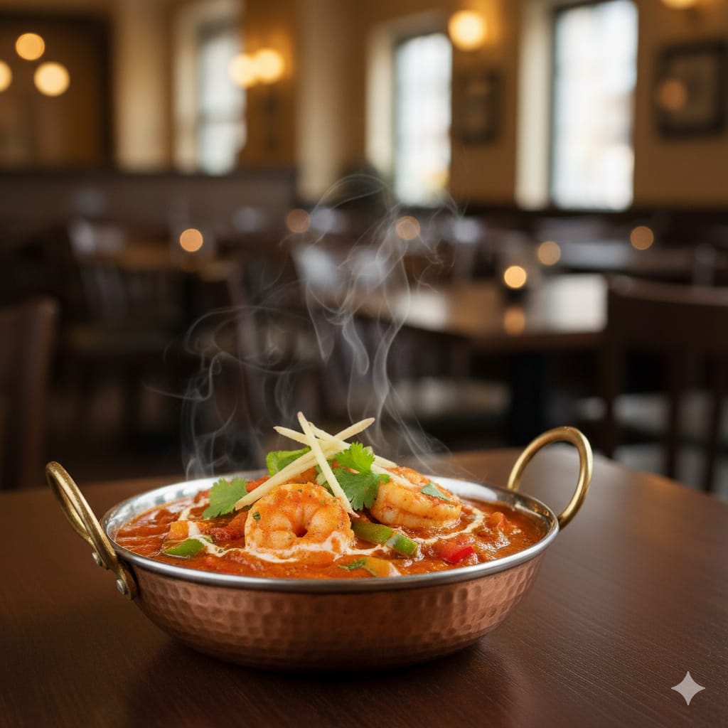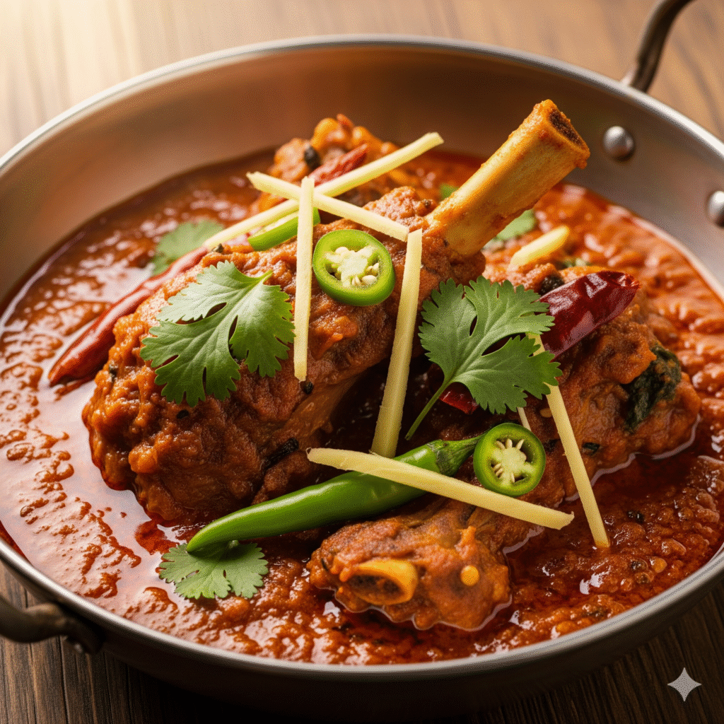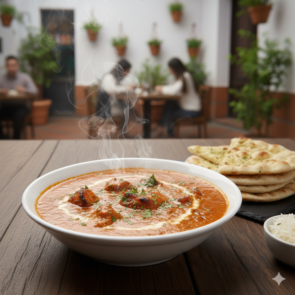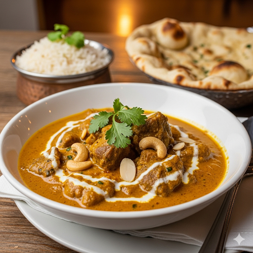 Carne de Ternera cocido en una salsa vindaloo con cebolla, tomate