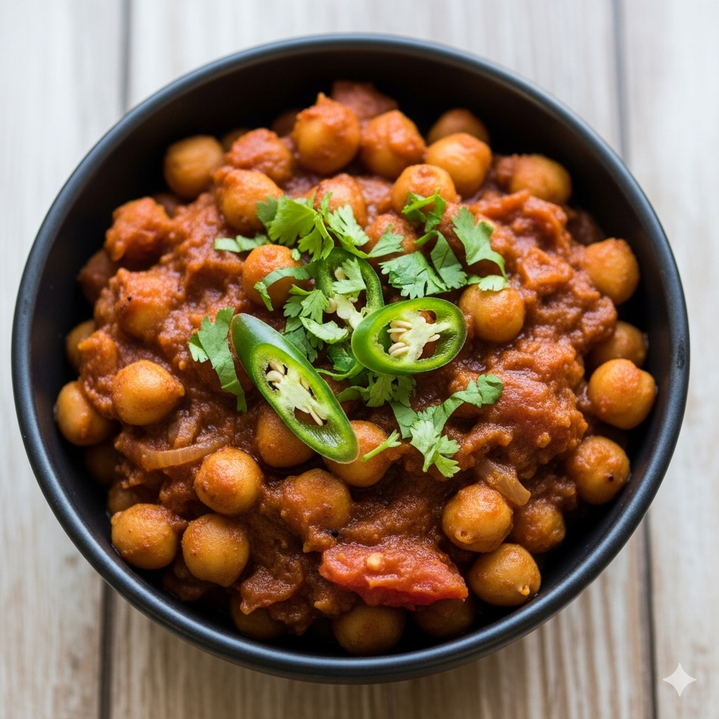 Garbanzos en salsa especiada de Tomate Fresco, Cebolla y jengibre