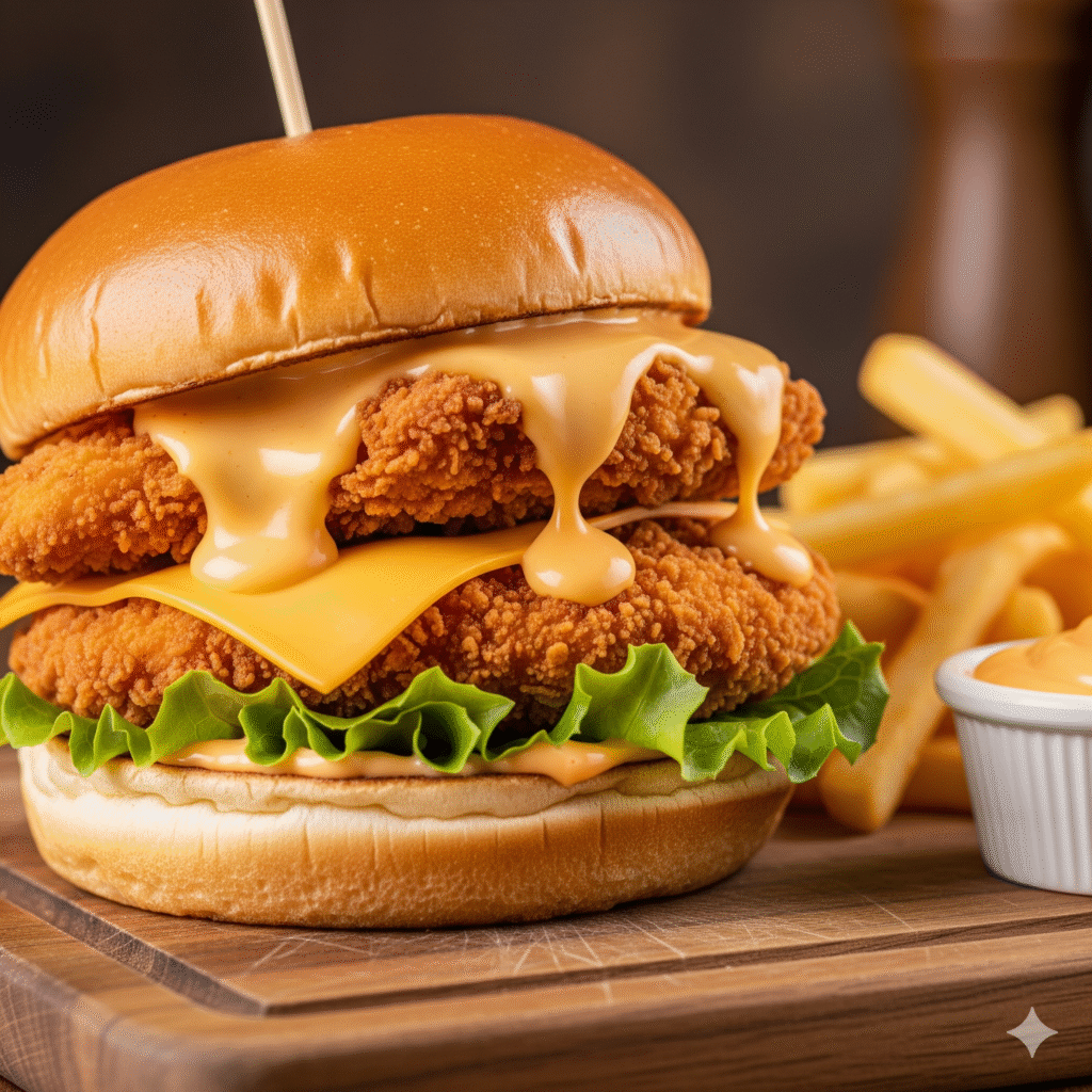 Hamburguesa con queso Halal: tiras clásicas, salsa de queso