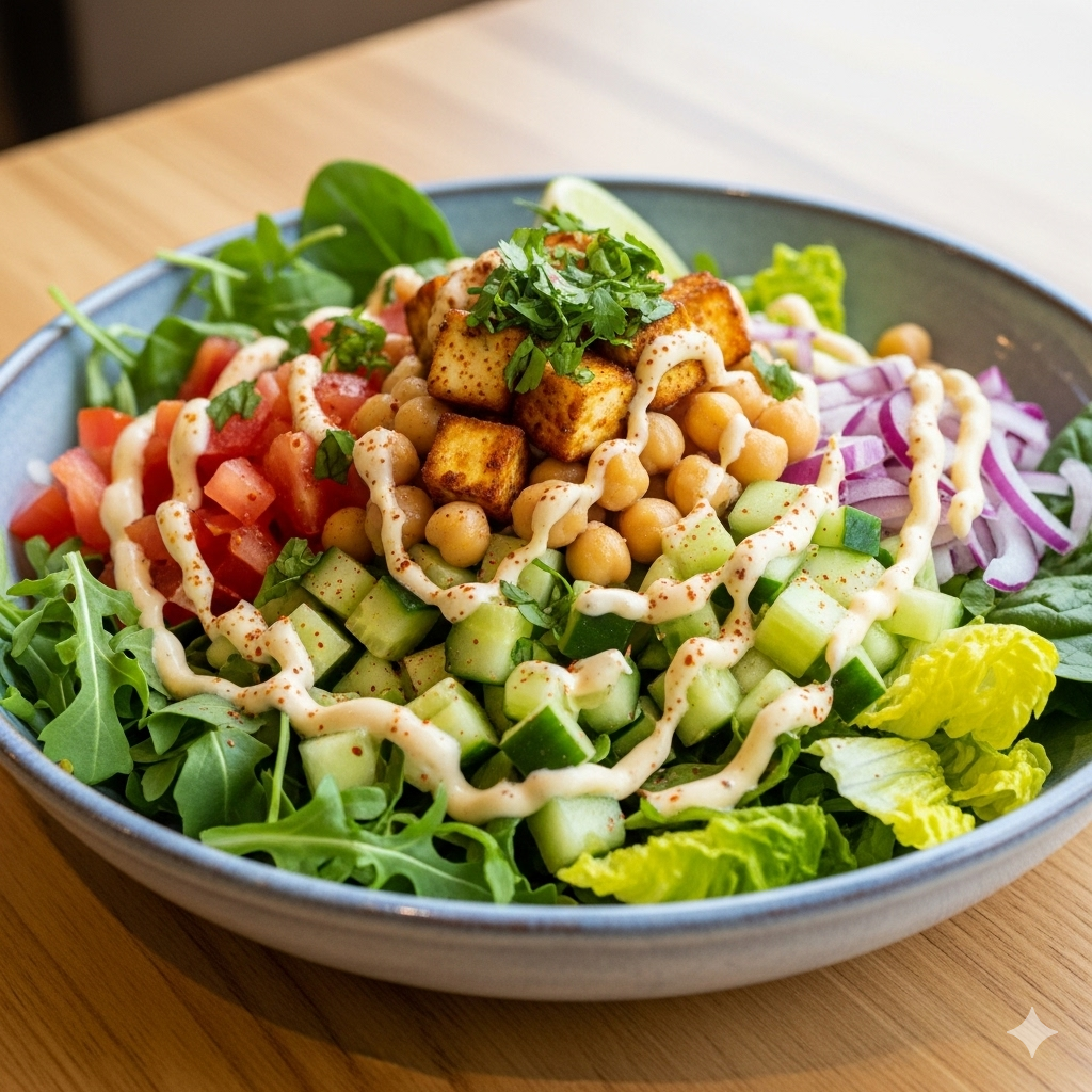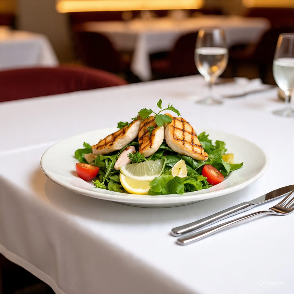 Lechuge,tomate,pepino,maiz y Pollo ala Brasa