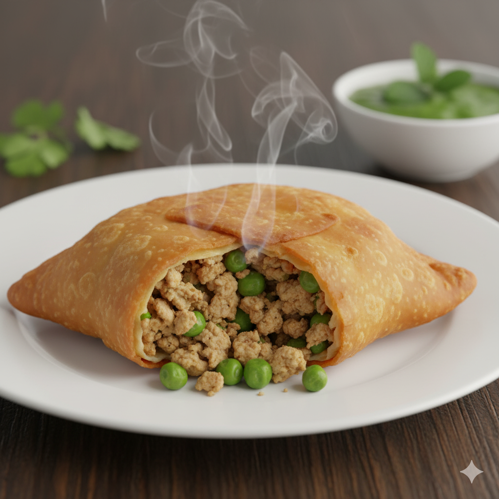 Samosa de pollo con patatas, cebolla, guisantes y especias especiales