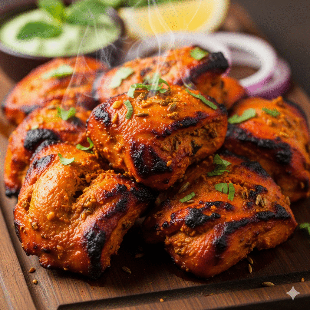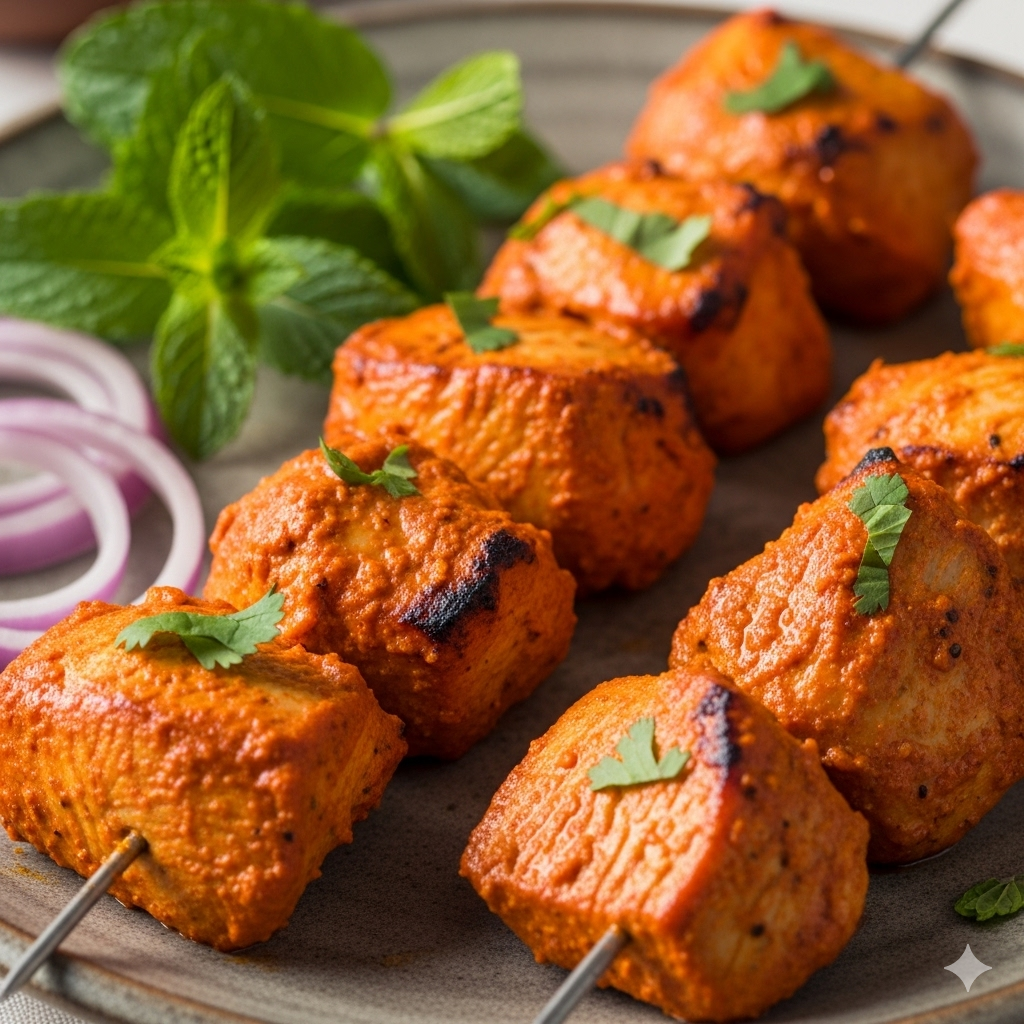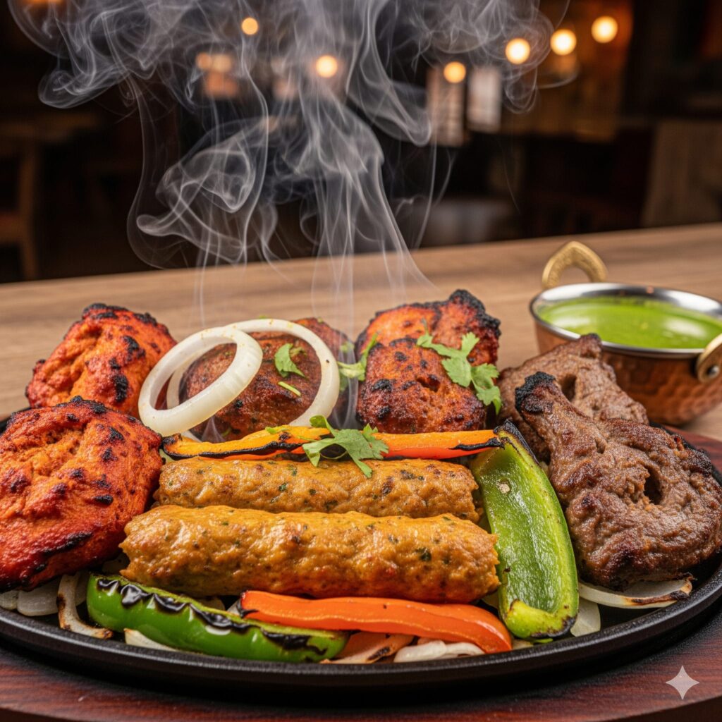 Muslo de Pollo Seekh kebab, Chicken Tikka, Lamb Tikka
