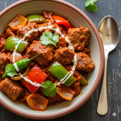 Carne de Ternera Cocinado en Salsa Tipico Picante Indio
