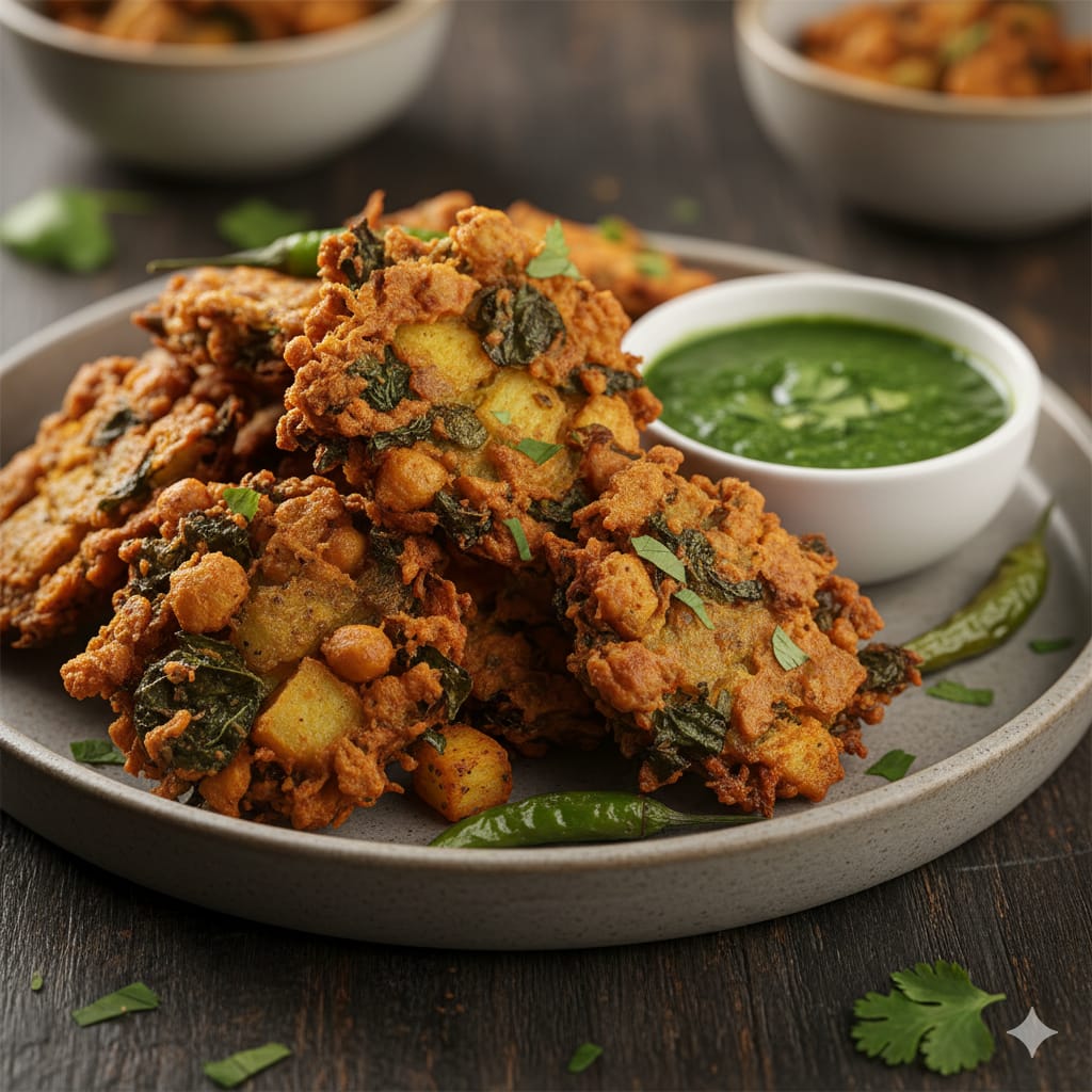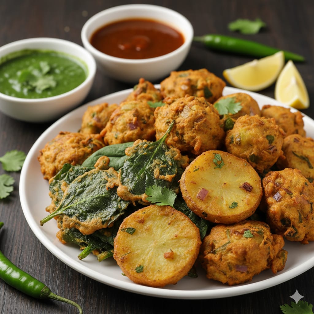 Harina de Garbanzos,Pescado,Pollo,Cebola,Berenjena,Pakora Verdura Especias
